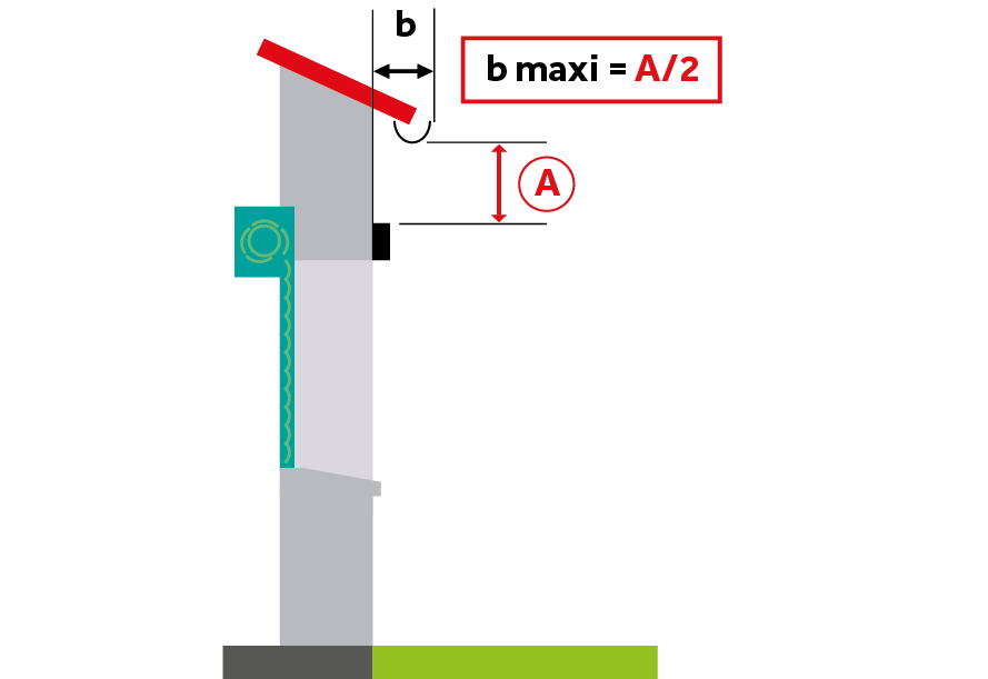 Dans le cas de l’avancée de toit ou d’un balcon, respecter la règle suivante pour contrôler la bonne exposition du panneau.